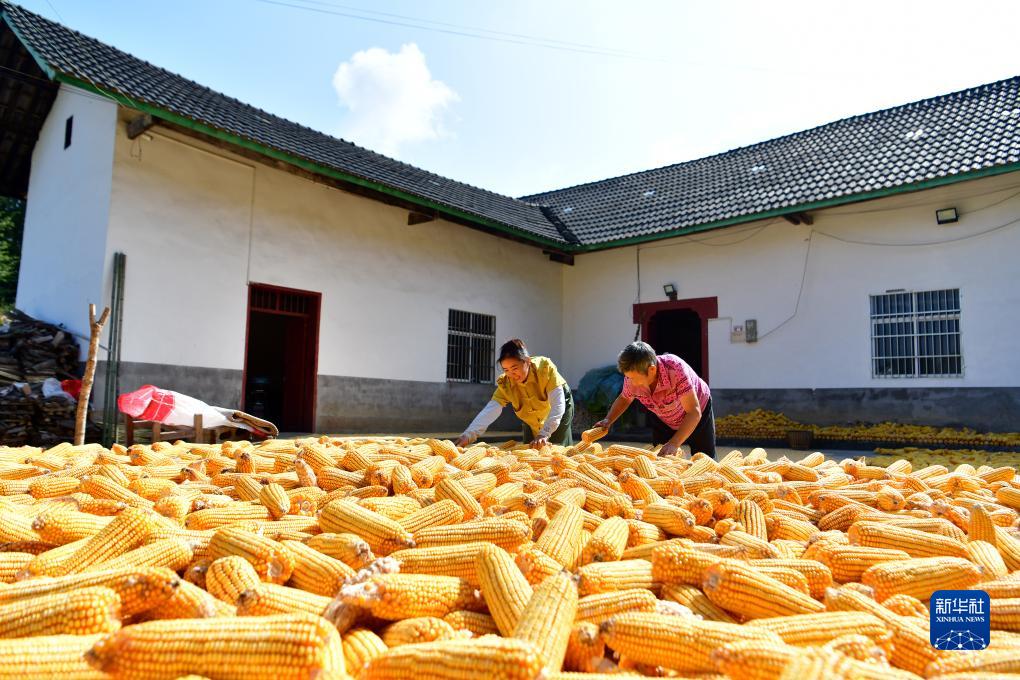 初秋時節,湖北省宜昌市秭歸縣九畹溪鎮的村民將收穫的玉米、辣椒等農産品晾曬在房前屋後,勾勒出一幅幅山村“曬秋”圖。