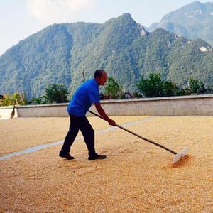 9月9日,秭歸縣九畹溪鎮穿心店村的村民在翻曬玉米。