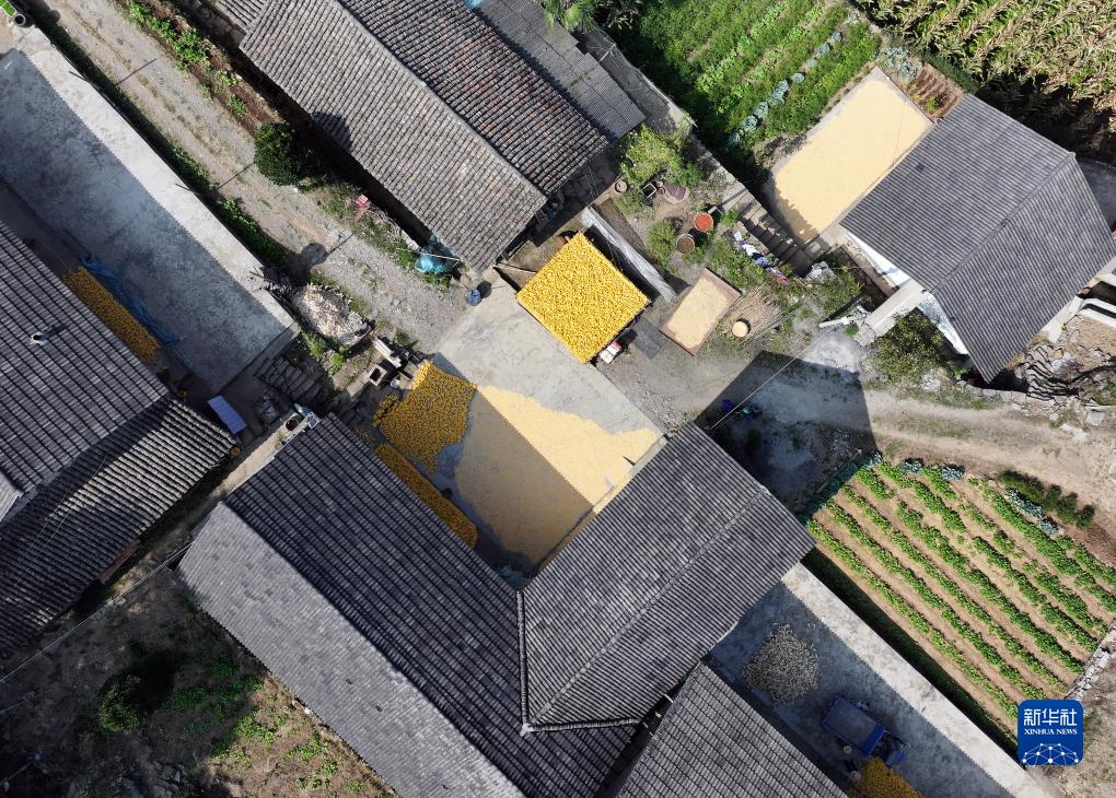 初秋時節,湖北省宜昌市秭歸縣九畹溪鎮的村民將收穫的玉米、辣椒等農産品晾曬在房前屋後,勾勒出一幅幅山村“曬秋”圖。