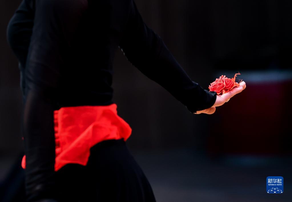 新疆塔縣文工團舞蹈演員古麗巴努爾·庫爾恰克在排練《花兒為什麼這樣紅》(9月4日攝)。