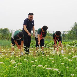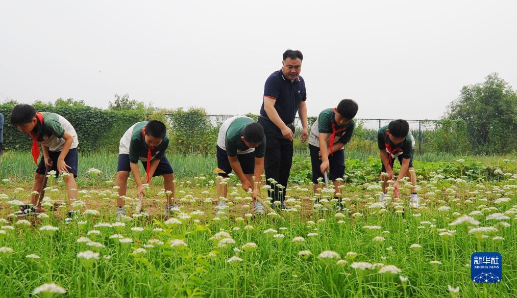 9月9日,在山東省樂陵市朱集中心小學勞動實踐基地,老師指導學生上勞動實踐課。