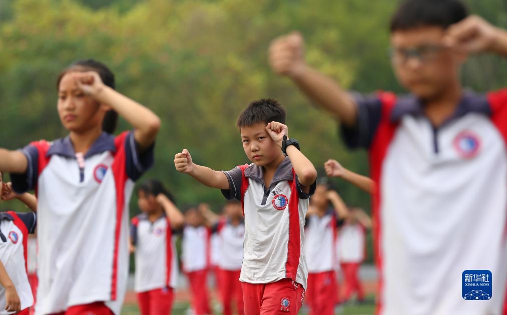 9月9日,在山東省樂陵市夢之家學校,學生學習形意五行拳。新華社發(李志軍 攝)