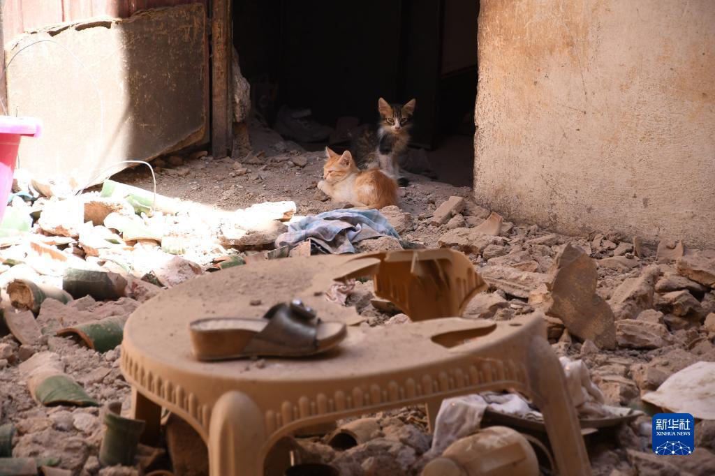 這是9月9日在摩洛哥南部城市馬拉喀什拍攝的震後景象。