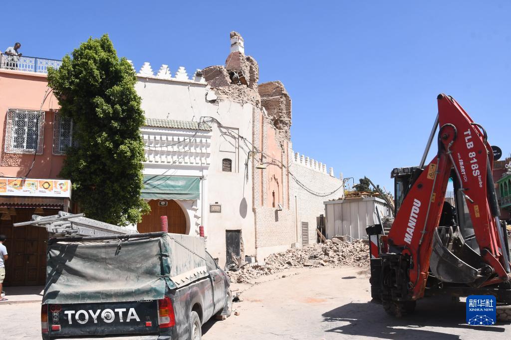 這是9月9日在摩洛哥南部城市馬拉喀什拍攝的震後景象。