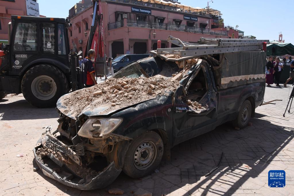 這是9月9日在摩洛哥南部城市馬拉喀什拍攝的受損車輛。