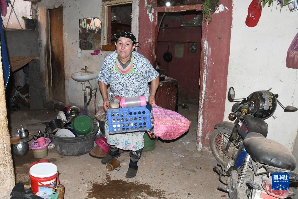 9月9日,在摩洛哥馬拉喀什附近,居民在家中進行清理善後工作。