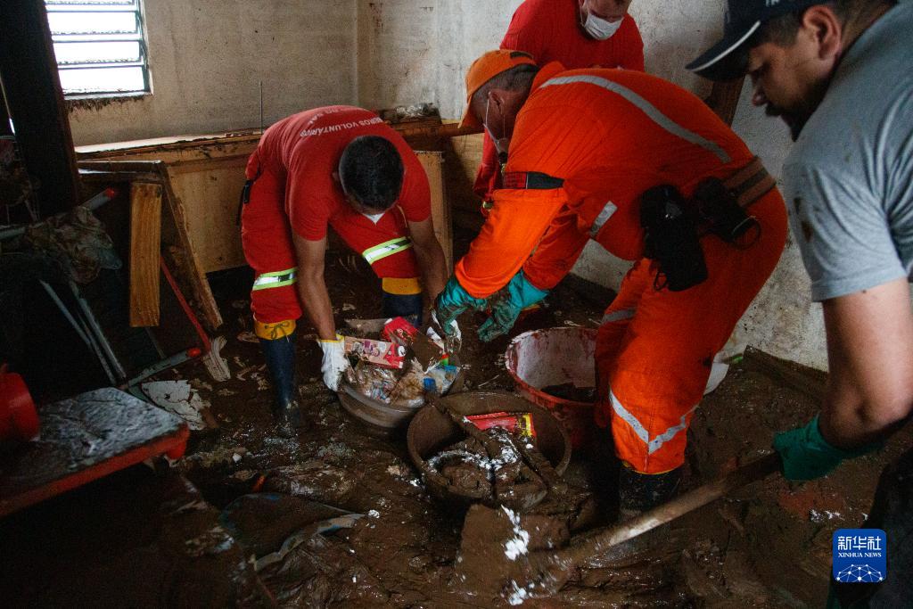 9月9日,救援人員在巴西南裏奧格蘭德州穆孫市清理一所學校。