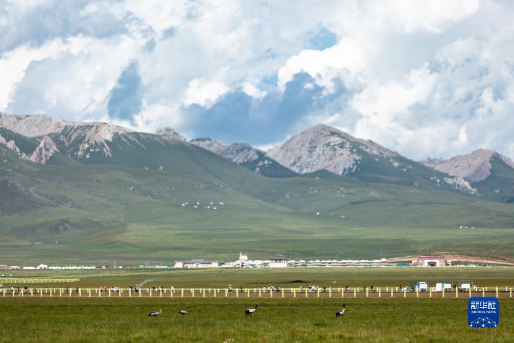 這是8月22日在四川省阿壩藏族羌族自治州若爾蓋縣花湖拍攝的黑頸鶴,目前黑頸鶴種群數量突破2000隻。