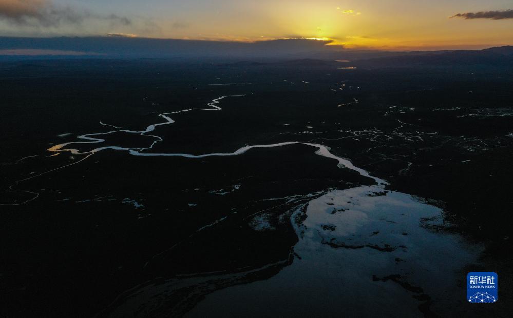 這是8月22日在四川省阿壩藏族羌族自治州若爾蓋縣拍攝的花湖,花湖之水經黑河匯入黃河干流(無人機照片)。