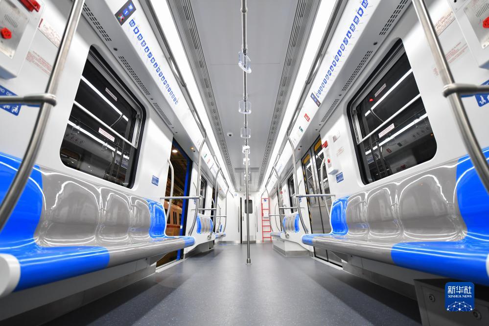 這是在中車株機公司拍攝的中國中車出口墨西哥城輕軌列車首列車內景(9月9日攝)。