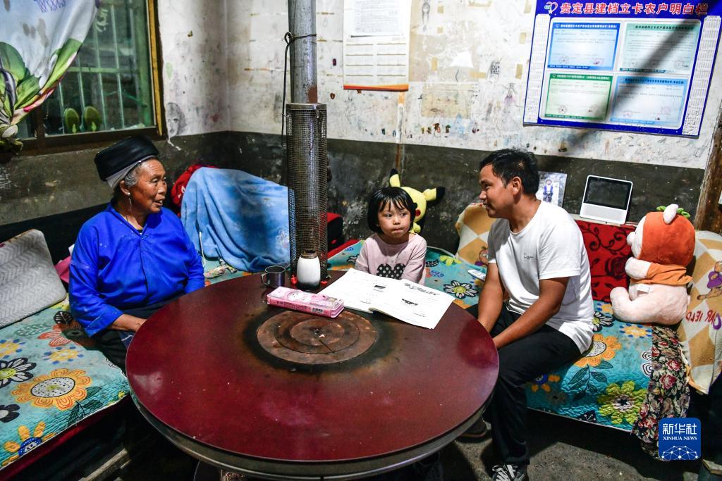 陸成文(右)在學生家中家訪(9月6日攝)。