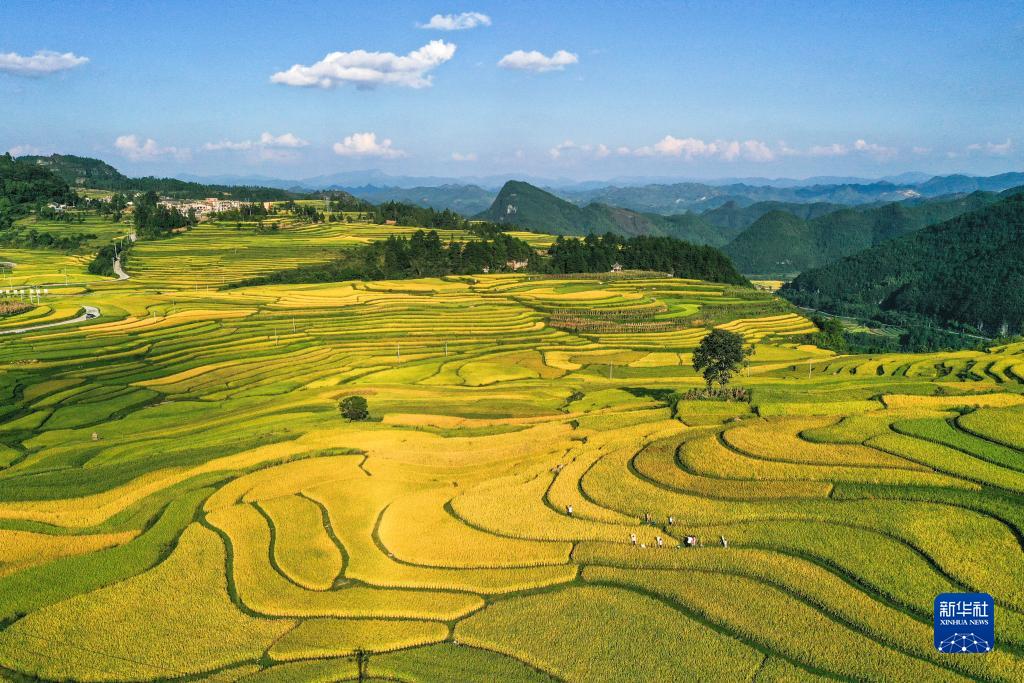 陸成文帶領學生在學校後山的臘利梯田寫生(9月6日攝,無人機照片)。