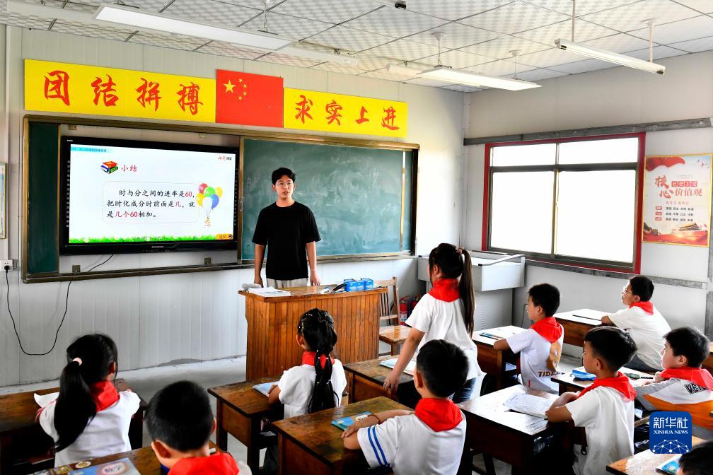 9月5日,在微山縣高樓鄉渭河小學,金子照老師在上課。