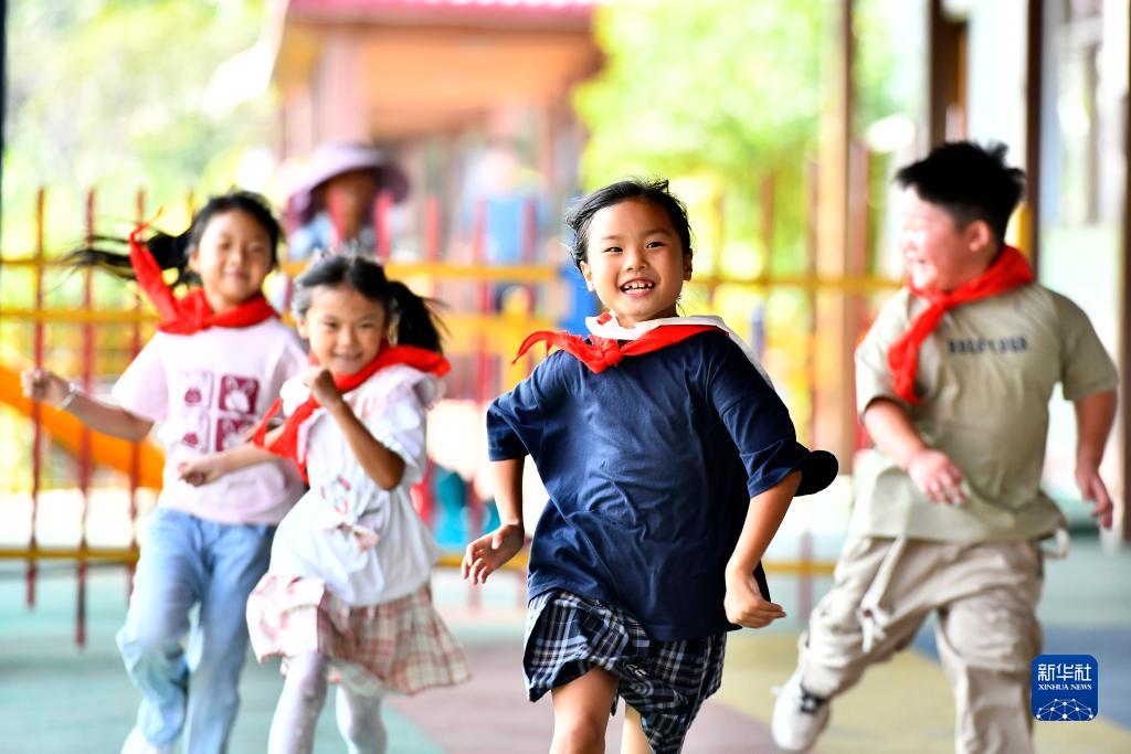 9月5日,在微山縣高樓鄉渭河小學,孩子們在課間做游戲。