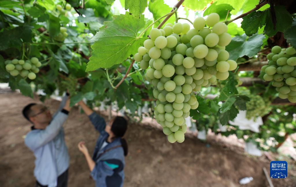 當日,寧夏青銅峽市大壩鎮2023年中國農民豐收節暨首屆上灘村大青葡萄採摘節在大壩鎮上灘村舉行。據了解,依託黃河灌區優良的沙質土壤和黃河水的灌溉等優勢,當地農戶種植大青葡萄430多畝,葡萄種植産業已成為當地農民致富增收的“香甜産業”。