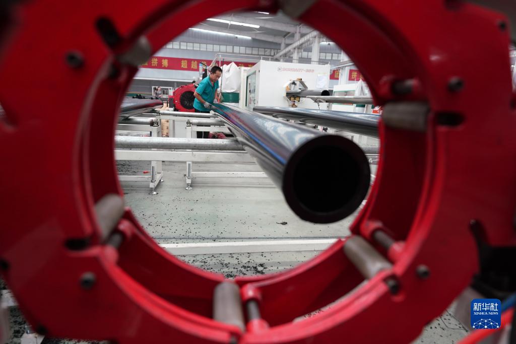 9月10日,河北省柏鄉縣一家管材生産科技型企業的工人在生産線上工作。