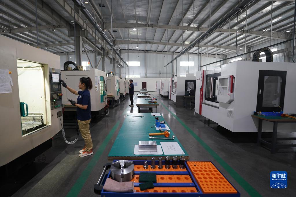 9月10日,河北省柏鄉縣一家機器人製造科技型企業的員工在生産線上工作。