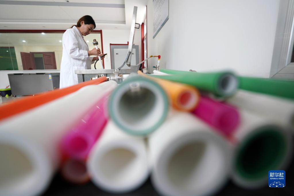 9月10日,河北省柏鄉縣一家管材生産科技型企業的研發人員在實驗室工作。