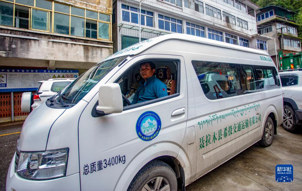 駕駛員旦增尼瑪運營的旅游車負責接送中國游客往返樟木口岸與聶拉木縣城(9月9日攝)。樟木口岸恢復客運功能後,他每天都要在這條線路上跑4、5個來回。