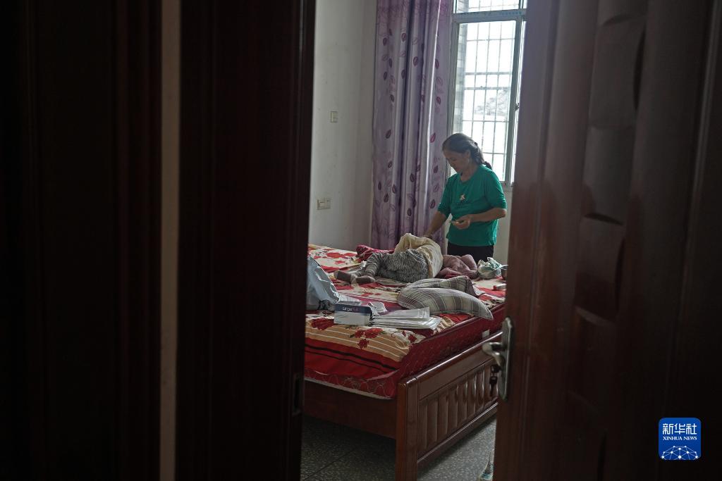 奶奶在家中用藥膏給小澤塗抹傷口(9月4日攝)。