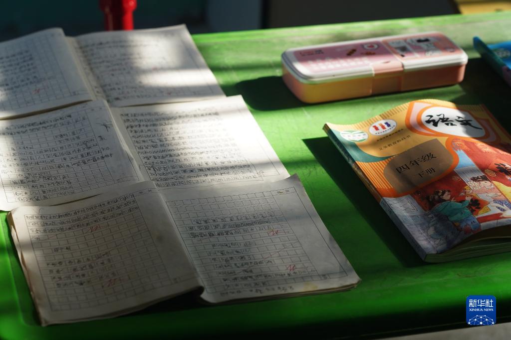 這是小澤使用的課本和作業本(9月4日攝)。