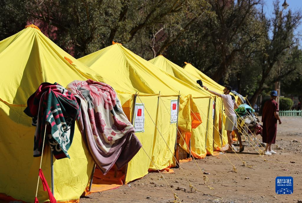 這是9月10日在摩洛哥震中附近的艾米茲米茲村一處臨時安置點拍攝的救災帳篷。