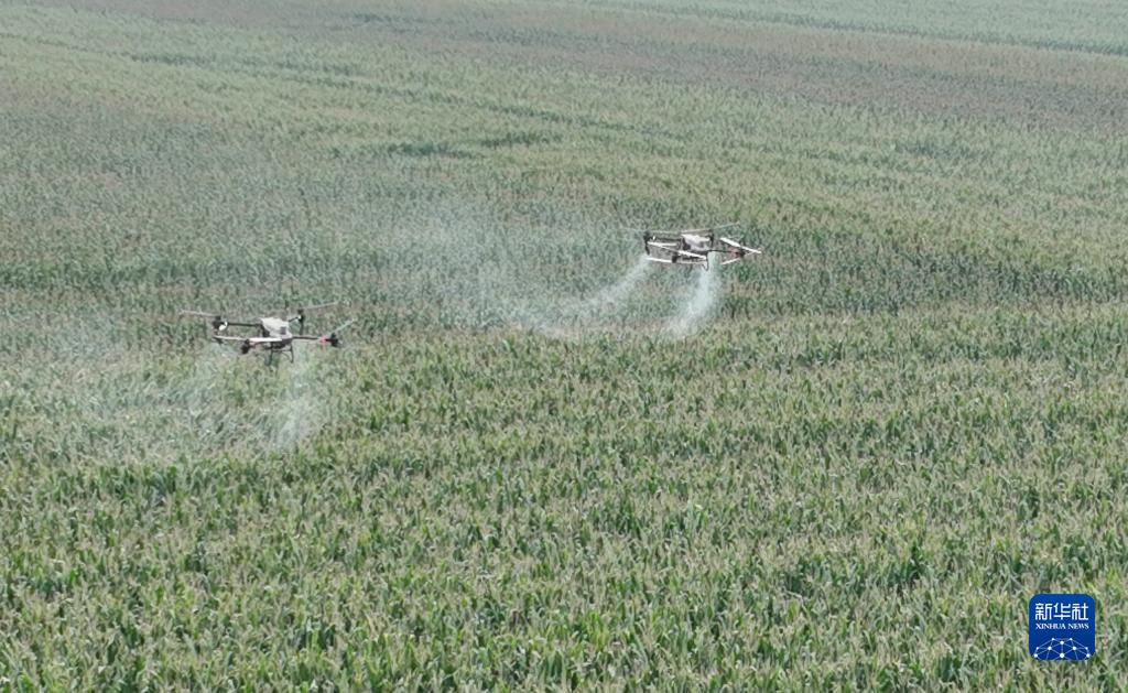 9月9日,樂陵市孔鎮鎮飛防作業社會化服務團隊在“噸半糧”核心區內進行飛防。