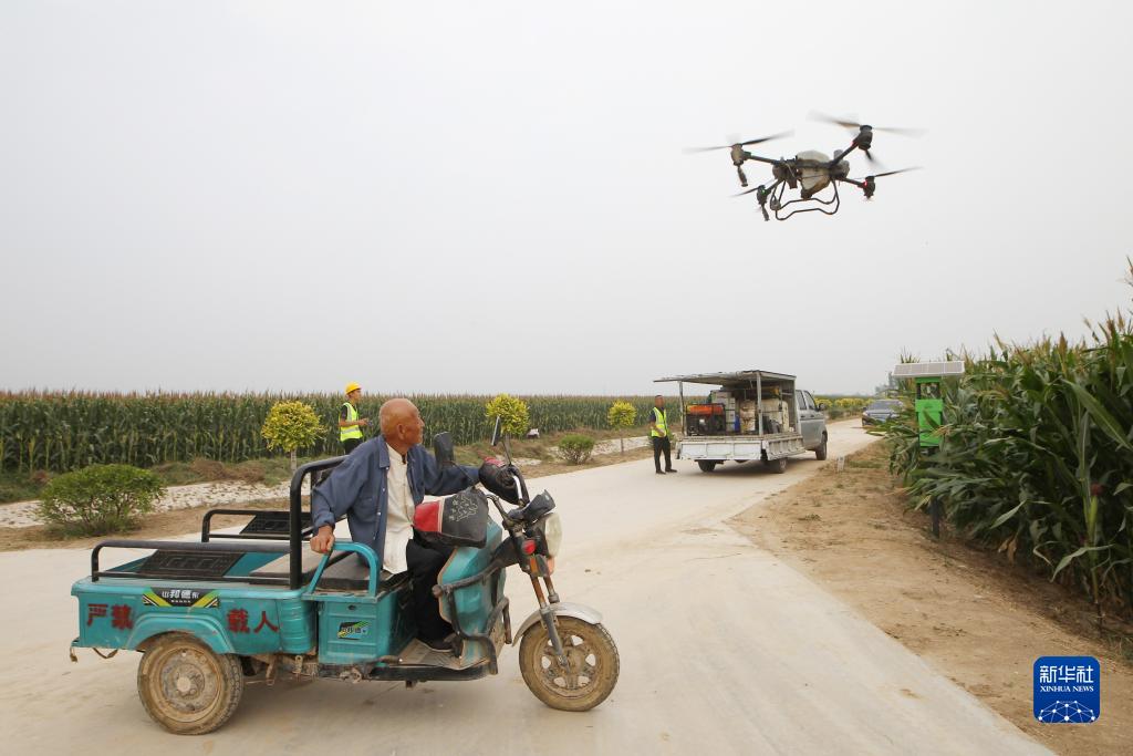 9月9日,樂陵市孔鎮鎮飛防作業社會化服務團隊在“噸半糧”核心區內進行飛防。
