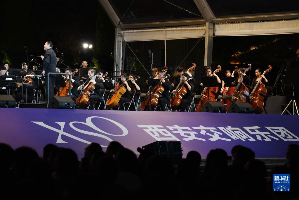9月10日晚,西安交響樂團在西安大雁塔北廣場戶外公演。