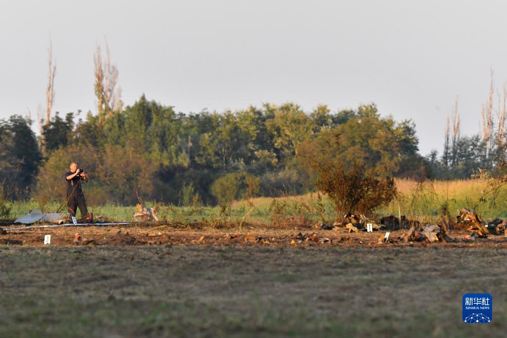 這是9月10日在匈牙利塞克什白堡附近的博爾貢德機場拍攝的飛機墜毀現場。