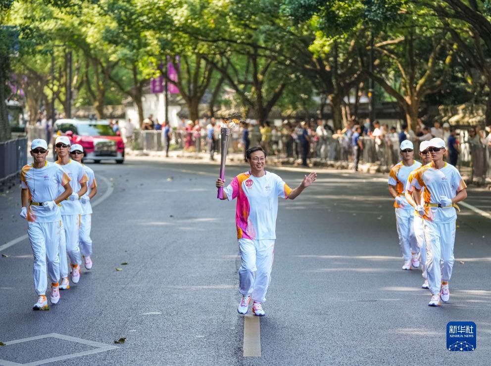 當日,杭州亞運會火炬在浙江省紹興傳遞。