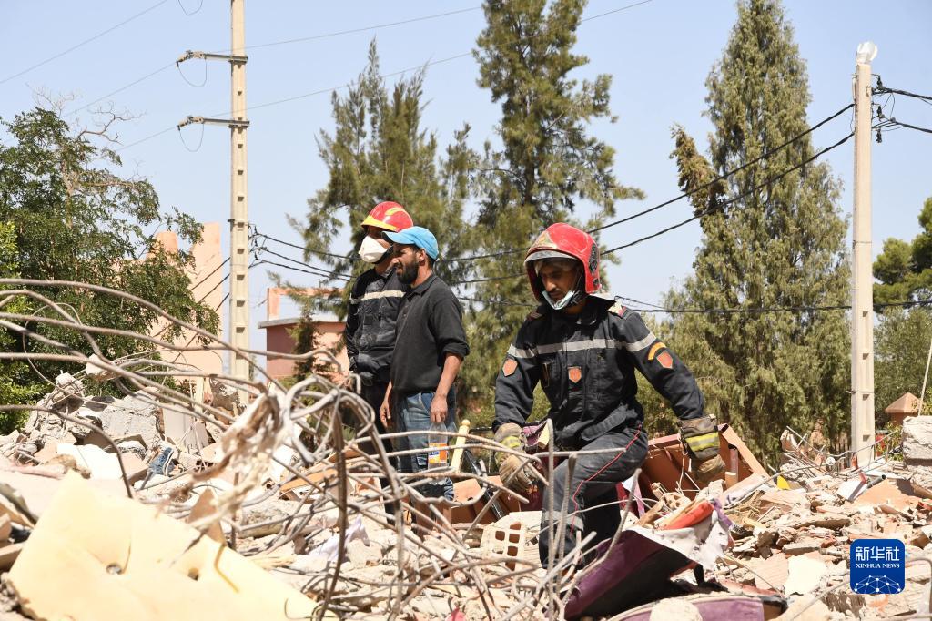 9月10日,在摩洛哥震中附近的艾茲魯村,救援人員實施搜救。
