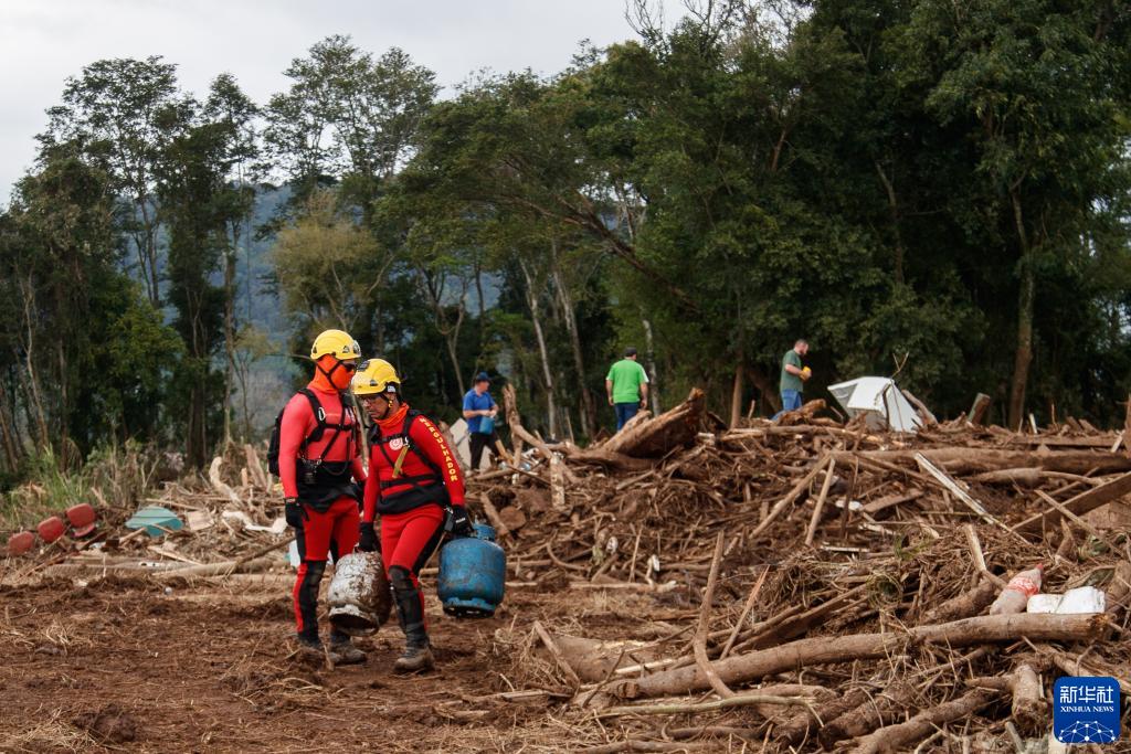 9月10日,消防員在巴西南裏奧格蘭德州科利納斯市清理一處廢墟。