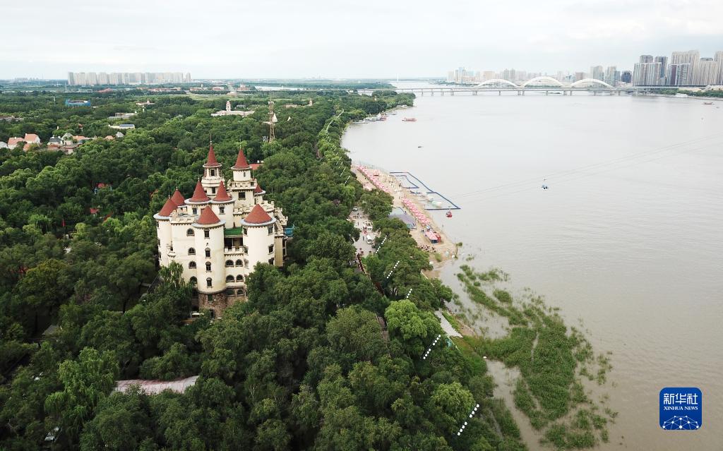 這是8月3日拍攝的太陽島景區的一處歐式建築(無人機照片)。