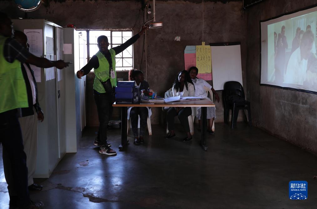 7月26日,瓜達吉亞與同事在莫桑比克馬普托省戈巴村學校查看中國援助的投影電視設備。