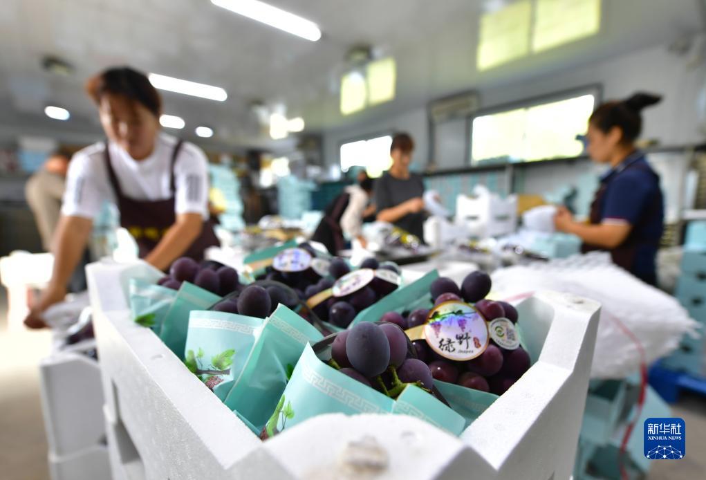 近日,遼寧省燈塔市種植的遼峰葡萄喜迎豐收。燈塔市出産的遼峰葡萄遠近聞名,目前種植面積約1萬畝。當地已形成葡萄培育、種植、銷售、倉儲、加工相關産業鏈,葡萄是當地農民致富增收的特色産業。