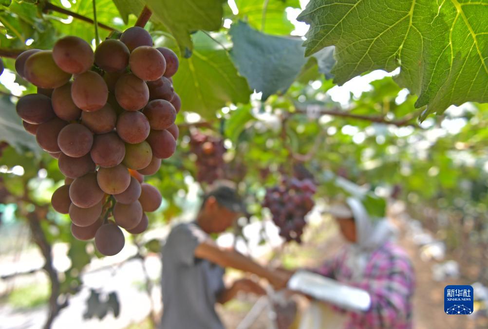 近日,遼寧省燈塔市種植的遼峰葡萄喜迎豐收。燈塔市出産的遼峰葡萄遠近聞名,目前種植面積約1萬畝。當地已形成葡萄培育、種植、銷售、倉儲、加工相關産業鏈,葡萄是當地農民致富增收的特色産業。