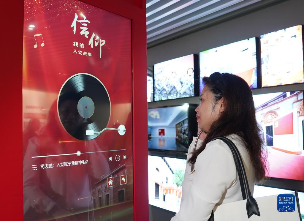 9月11日,參觀者通過多媒體裝置聆聽普通黨員講述自己的入黨故事。