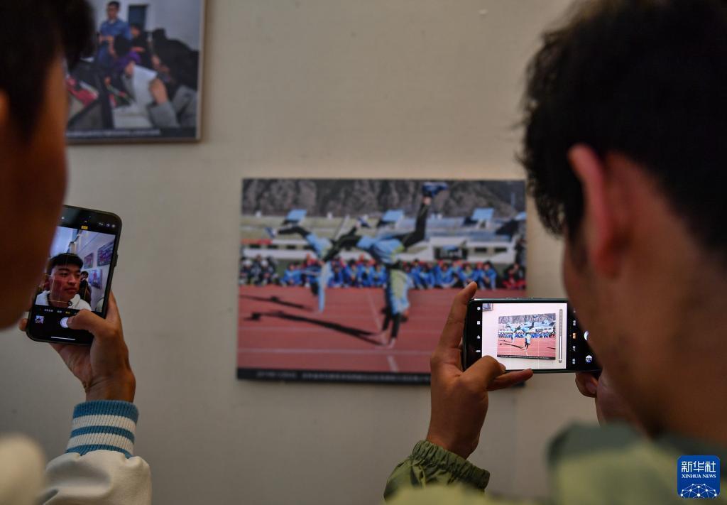 9月11日,西藏大學學生在觀看圖片展。