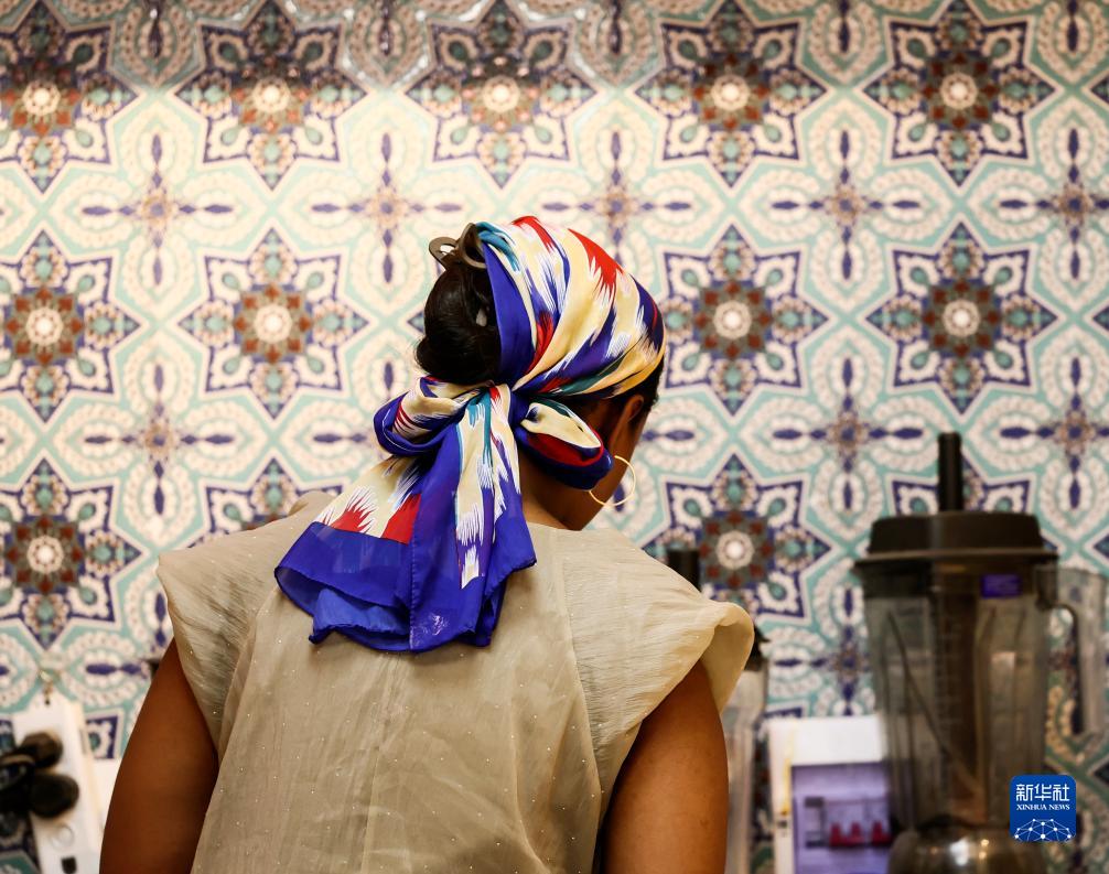 海迪雅在自家咖啡館內製作飲品(9月7日攝)。