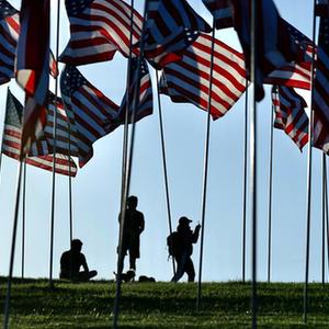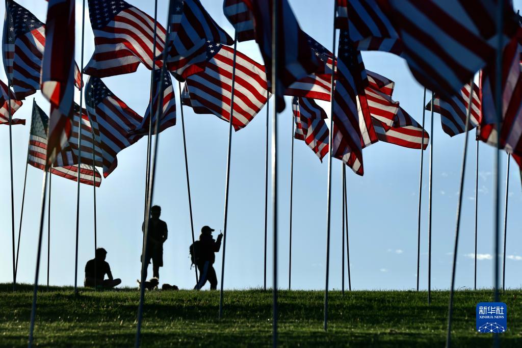 9月10日,人們參觀美國加利福尼亞州馬利布佩珀代恩大學草坪上的“旗海”。