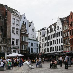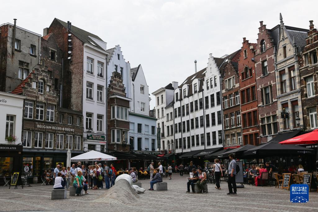 這是9月11日在比利時安特衛普拍攝的商業區一景。