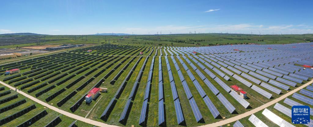 光伏板整齊排列在位於河北省張家口市的國家級可再生能源示範區內(2023年8月18日攝,無人機照片)。