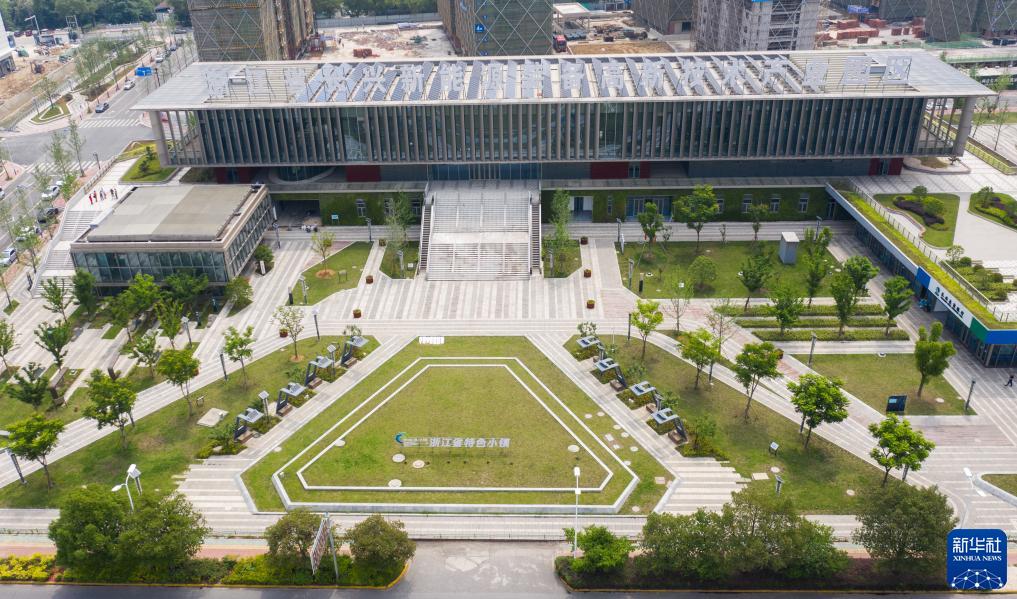 空中俯瞰浙江省長興縣畫溪街道新能源小鎮“城市客廳”(2020年5月21日攝,無人機照片)。新能源小鎮“城市客廳”採用分佈式光伏建築一體化發電系統,年發電量達28萬千瓦時,在滿足建築主體自用的前提下,多餘電量還可併入電網,産生“綠色收益”。