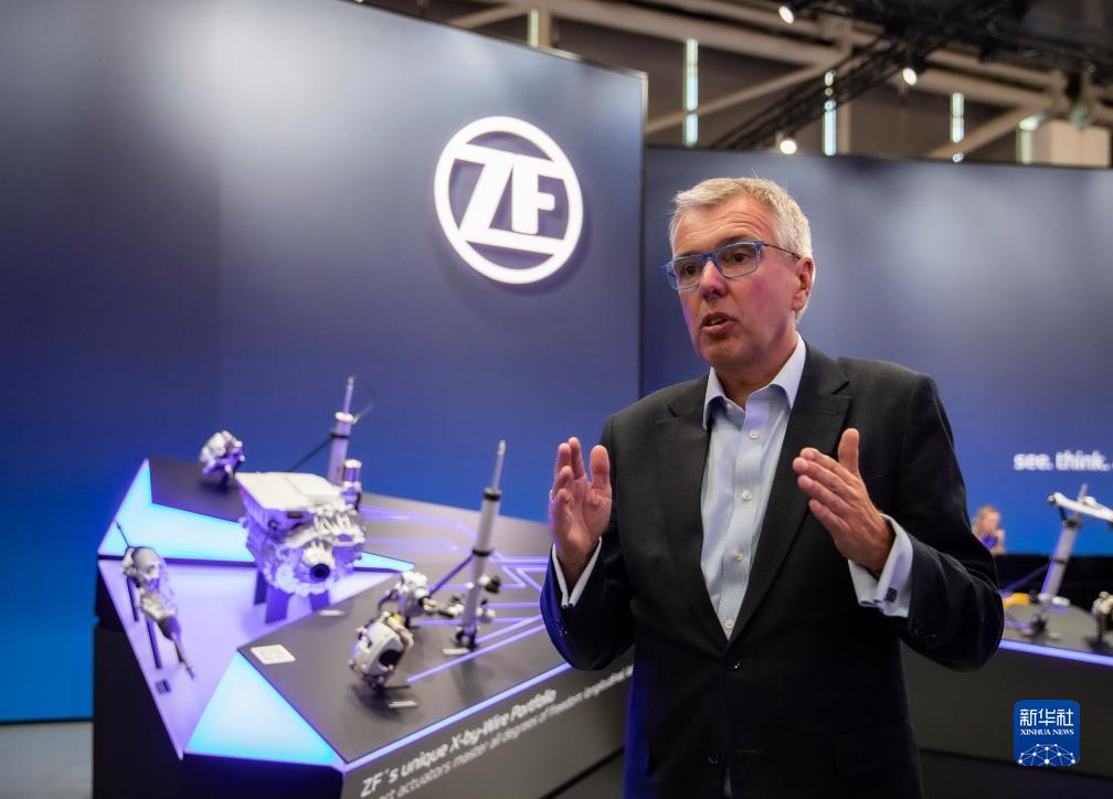 9月4日,德國汽車零部件生産商採埃孚集團董事會主席、首席執行官柯皓哲在慕尼黑舉行的2023年德國國際汽車及智慧出行博覽會媒體預展上接受新華社記者專訪。