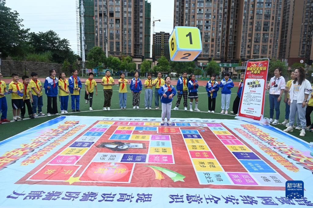 9月12日,在四川省內江市東興區陽光學校,學生參加網絡安全知識衝關互動游戲。