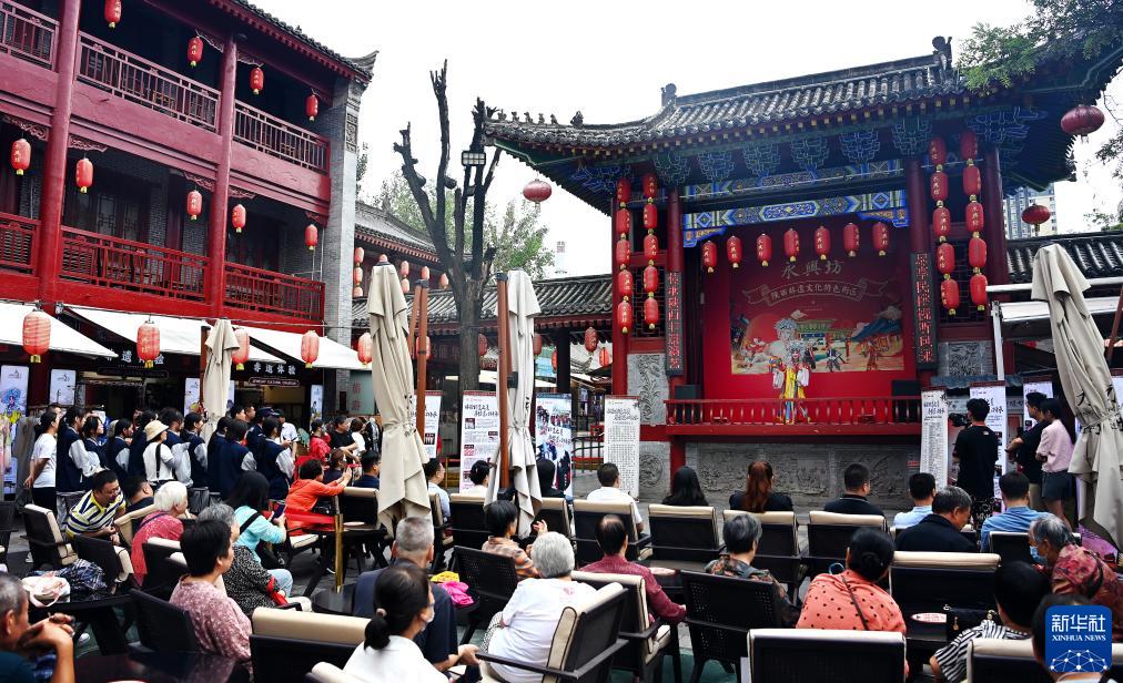 9月12日,西安市新城區“遇見城墻·非遺韻”非遺集市上,觀眾在欣賞秦腔表演。