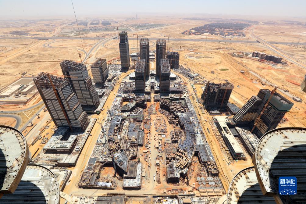 這是2021年6月17日拍攝的埃及新首都中央商務區項目建設現場。由中建埃及承建的埃及新首都中央商務區項目位於開羅以東約50公里處,總佔地面積約50.5萬平方米,包含20個高層建築單體及配套市政工程,是在埃及落實共建“一帶一路”倡議的重要項目。
