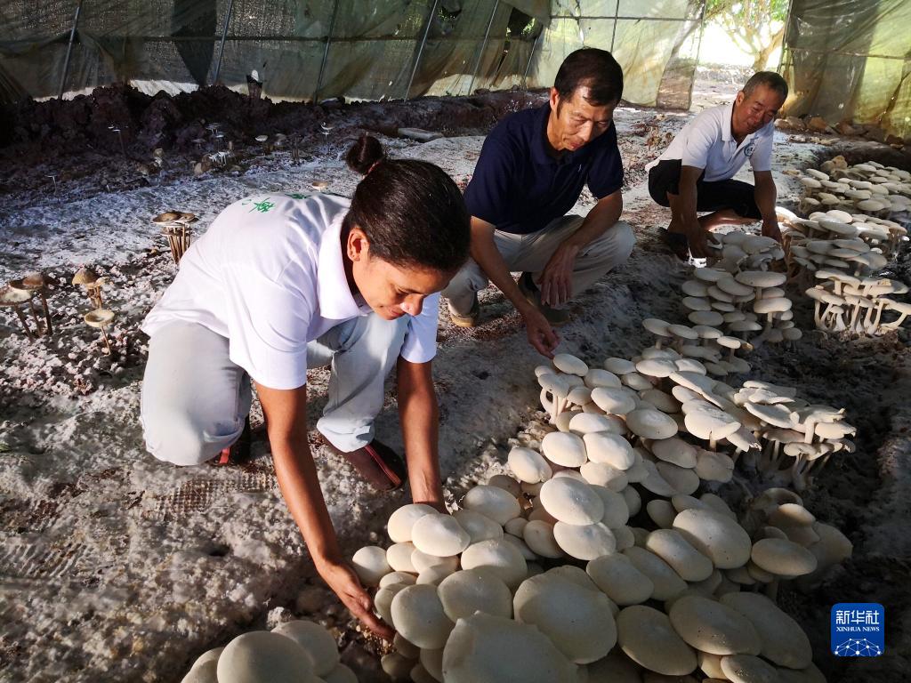 這是2018年6月12日,在斐濟楠迪,中國專家和當地僱員檢查菌菇生長情況。在中國治理荒漠化已見成效的“利器”——菌草,在斐濟落地生根,有力促進了該國農業的可持續發展,被當地民眾稱為助力斐濟減貧致富的“幸福草”。