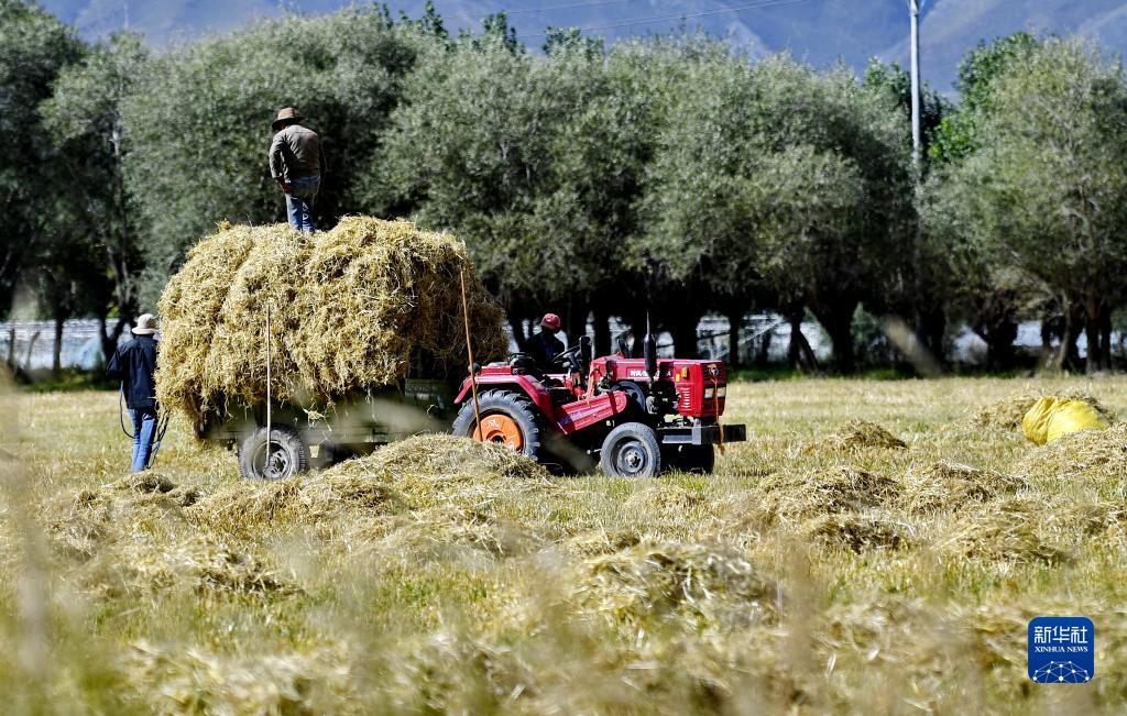 近日,西藏拉薩市曲水縣青稞成熟,人們忙着收割青稞,感受豐收的喜悅。